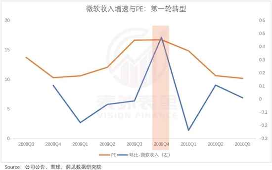 与微软走出谷底时持续的15%收入增速相比,这个低于10%的收入增速,意味着什么,不言而明。