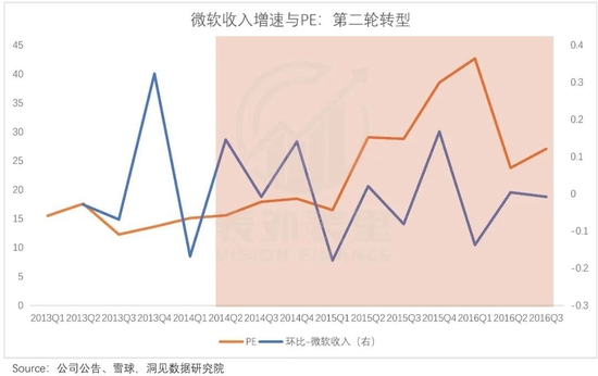 云业务落地成了真正的增长接力棒,2014Q2收入增速达15%左右,之后股价一路向上。