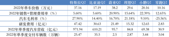 从单车价格、销售量、毛利率、销售管理费用率来看,在各路电动车企主要车型逐步进场的背景下,特斯拉凭借37.16万元的单车价格、25.47万辆的汽车交付量、仅仅5.6%的销售管理费用、27.9%的毛利率,成为行业龙头。