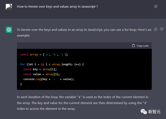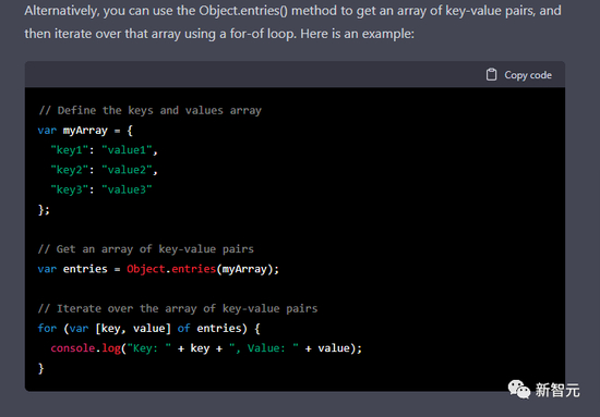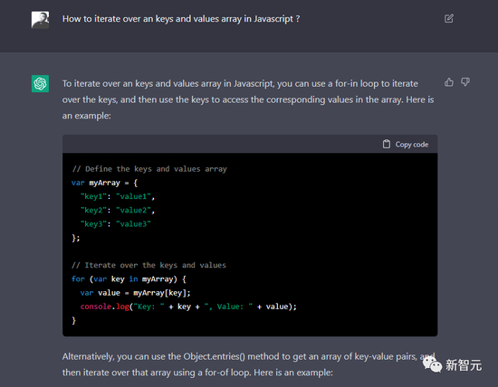 锦上添花的是,ChatGPT还能通过一个支持性的例子和解释,告诉你这个JavaScript中常见问题的最佳的解决方案: