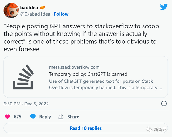 使用ChatGPT可以通过疯狂灌水,自动生成答案来刷分,即使这些答案是否正确他们根本不知道,也不关心,这对Stack Overflow论坛生态的危害是显而易见的。