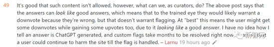 禁止这样的内容是好事,不过审核的人能做什么呢?上面有帖子说,这些AI生成的答案可能看起来像高质量答案,这意味着对于训练有素的人来说,可能会发现错误而点个踩。