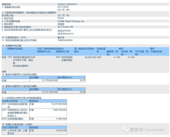 而2022年11月23日,黄光裕刚刚减持国美零售股权6900万股,减持均价为0.118港元,套现814万港元。黄光裕持股从34.07%降至33.88%。2022年以来,黄光裕家族就不断减持国美零售,累计套现约10亿港元。