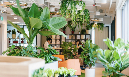 在Odeon Towers开设第一家空间之前,李瑞武团队足足考察了新加坡四十多个地点。为了打造绿色生态的工作环境,他们在选择空间地点时,除了满足必须的交通便利性、餐饮多元性和金融体系配套服务外,还需要满足一系列生态标准。“比如说我们选址的窗景要好,建筑结构要合理,楼间距要相对开阔,还有室内的光线条件,这些不仅影响到工作者的心情状态,也影响植物的生长情况,除此之外还有诸多标准。”刘珍妮介绍道。