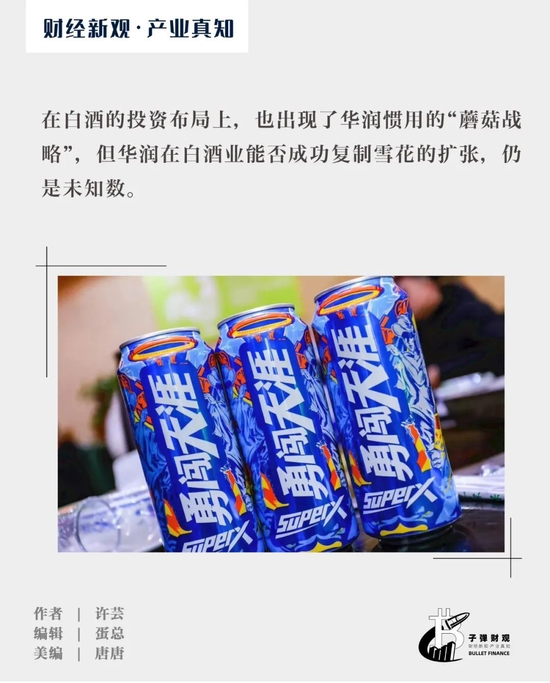 如今,在白酒的投资布局上,也不难一窥“蘑菇战略”的身影。但华润在白酒业能否成功复制雪花的扩张、完成从中低端到高端的进化,目前仍是未知数。