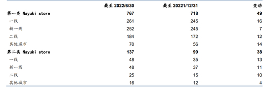 除此之外,奈雪的茶也一直在加速门店扩张的步伐。其中报显示,截至2022年6月30日,公司共开设904家奈雪的茶门店,净新增87家。根据公司新口径,第一类门店767家(新增49家,为商圈评级较高的门店),第二类门店137家(新增38家)。