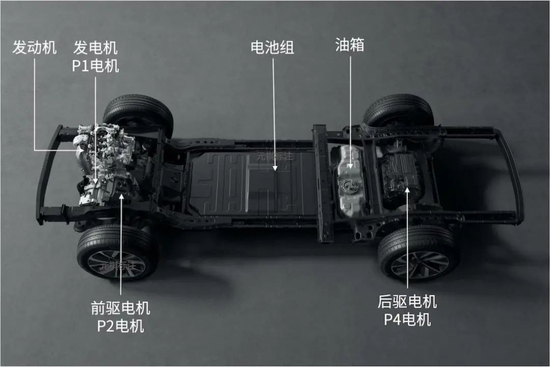 理想ONE的增程式混动系统结构示意图