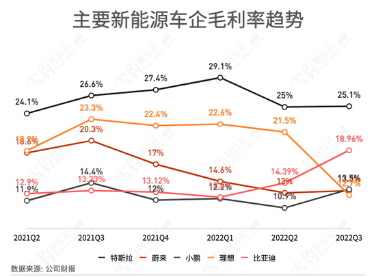 不过,值得注意的是,从今年Q2开始,理想的毛利率已经连续两个季度下滑,即便理想汽车把车辆毛利率维持在20%左右,也不及往年同期。