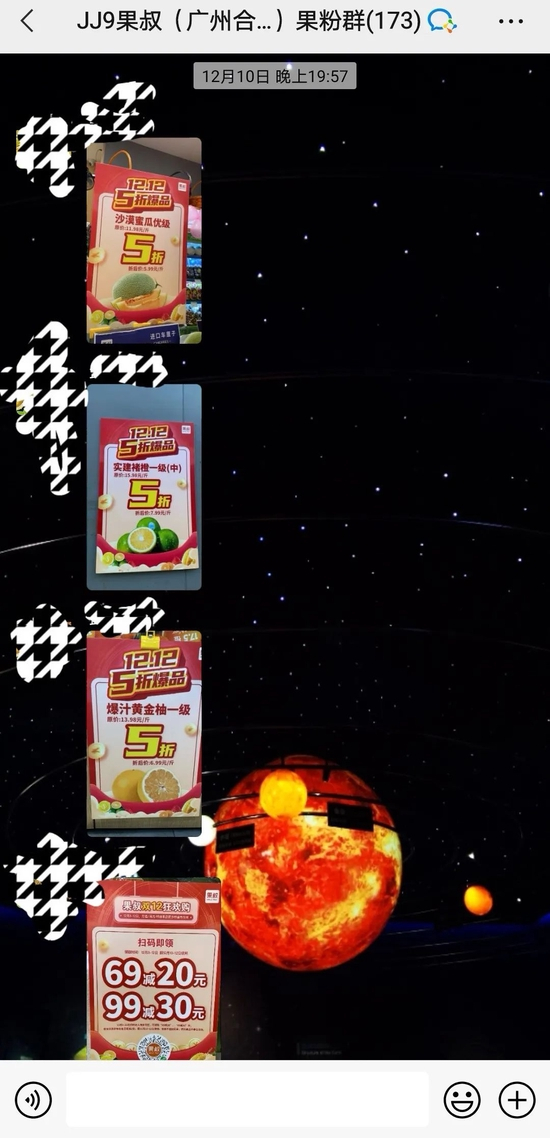 但在12月10日那天,原本没有购物打算的她还是在店长的病毒式轰炸中沦陷,在家里存货还没消耗完的情况下又购买了一份当季的褚橙和一份阳光玫瑰青提。