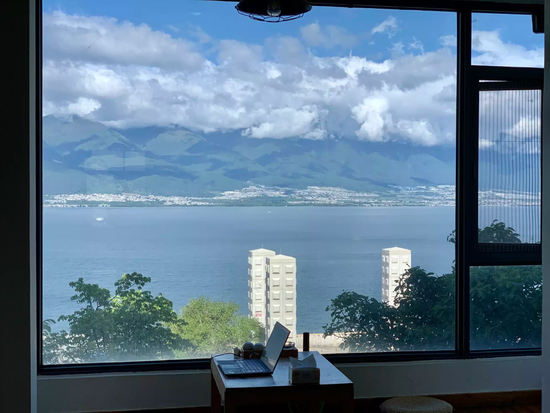 组团来大理上网课的她们,在大理古城附近租下一栋民宿小院,拎包入住,自己做饭,推窗就能看到洱海。