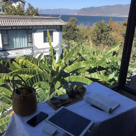临近期末,课程并不繁重,他们有更多的时间去感受这种与在校截然不同的生活方式。听课地点,有时候是民宿里种满花花草草的院子,有时候是古城里一家安静的咖啡店,有时候是洱海边的草地上。
