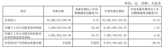 其中,第三季度伊利股份实现营业收入302.87亿元,同比增长6.72%,单季度营收增速创出了近十个季度以来的新低;实现净利润19.29亿元,同比下降26.46%,扣非净利润为16.93亿元,同比下滑幅度达到33.27%。