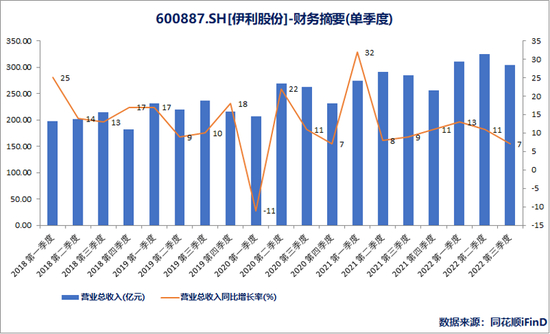但就在2022年三季度,一向业绩坚挺的伊利股份出现了少有的业绩下滑与股价重挫。