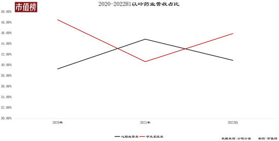 2020年至今年上半年,连花清瘟所属的呼吸系统类药物销售占比,与心脑血管类药品销售占比此消彼长,但均保持在40%以上。
