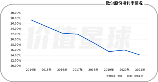 被锁住命运的喉咙后,企业难免“委曲求全”,让利是常发生的事情,旨在保证大客户的持续粘性。比如,歌尔股份与苹果的最甜蜜月期也正是其毛利极速下滑的时期:其毛利率从2017年的22%下降至2021年的14.13%。