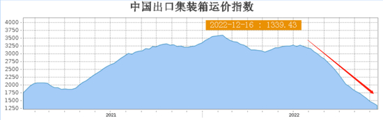 根据上海航运交易所显示,2021年6月至2022年7月,中国出口集装箱运价指数(CCFI)一直处在高位,但之后开始急剧下滑。2022年12月16日,CCFI已经跌至1339.43点,较2022年最高点跌去了62.8%。东南亚集装箱运价指数也降到了1000点以下,年内跌幅也达到了六成左右,有货代企业表示东南亚航线已经出现了贴钱的赔本生意。