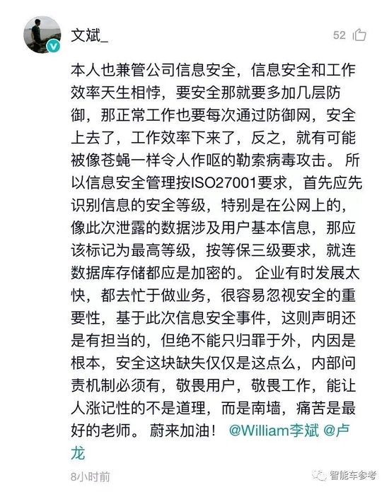 蔚来首席信息安全科学家卢龙,发表了一则官方声明。