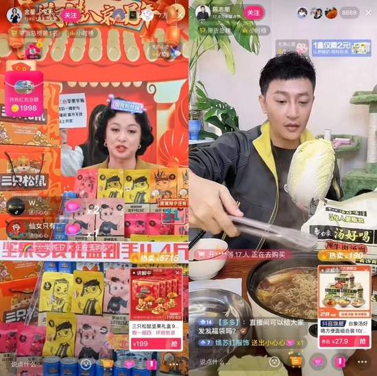 图为部分明星直播间截图