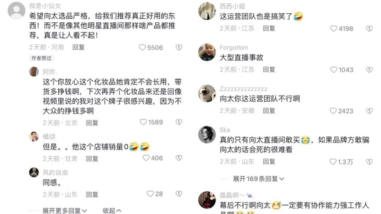然而,直播带货是人、货、场三方的全面联动,对于入局的新“玩家”而言,找到三者间的平衡至关重要,否则也会面临“翻车”的风险。此次向太直播间的负面舆论,在本质上是货盘与人设的不符所带来的。用户的转化源于更高层次的信任与习惯,并非是将主播本人简单“移植”到直播间内,而是要基于主播的特质进行精细化营销,塑造适合直播节奏的主播形象。向太的人设与风格或许并不适合一味追求低价与性价比,产品的品质与品牌力才是吸引用户的关键。