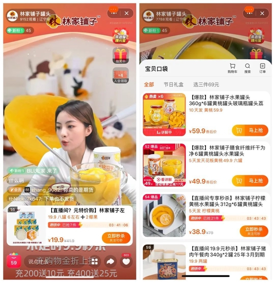 目前,在淘宝直播间,林家铺子的罐头并未显示“缺货”或“售罄”,消费者能正常购买,但需要等5天或者10天才能发货。不少网友在评论区吐槽,自己买的是“期货”。