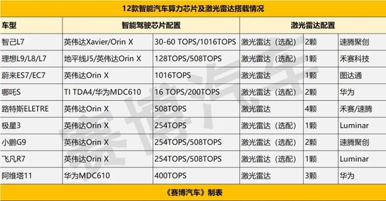 12款智能车上市,大算力芯片、激光雷达成标配