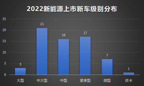 按级别来看,中大型是各车企竞争的主战场,累计上市新车21款,其次是中型和紧凑型,累计上市新车分别为16款和17款。起售价格来看,仅有22款车型价格定在15万元以下,可以看出,中高端市场已经成为车企竞争的焦点。