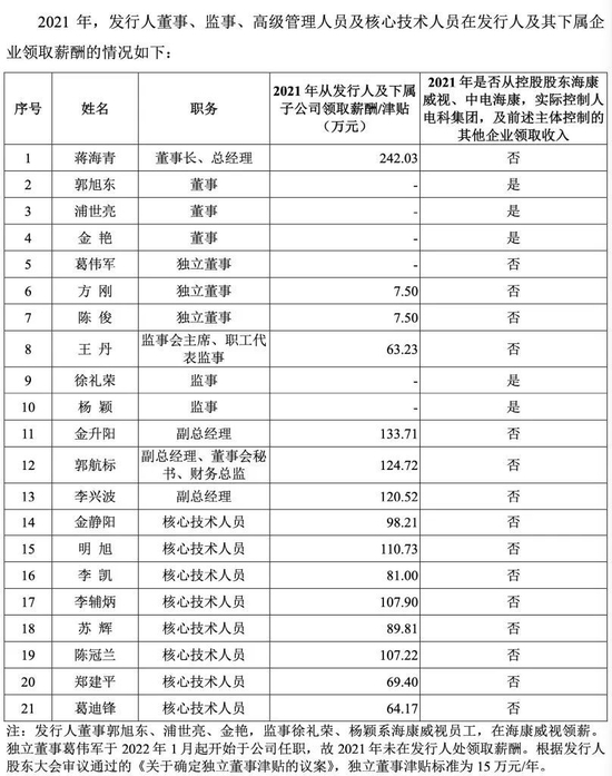 2021年,萤石网络董事、监事、高级管理人员及核心技术人员领取薪酬情况: