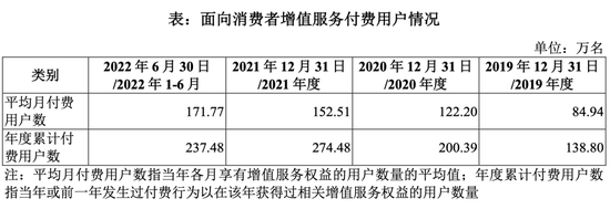 其增值服务付费用户数近年持续增长,2022年上半年平均月付费用户数达到171.77万名。
