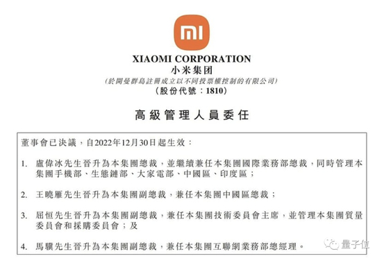 这宣告了,小米管理层实现了顺利的交棒迭代,并为未来的持续发展做好了准备。
