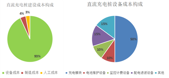 据智研资讯统计,充电桩硬件设备的成本是充电桩的主要成本,占比在90%以上,其中充电模块是充电桩硬件设备的核心,成本占充电桩硬件设备成本的50%。