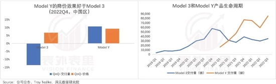 这在数据上已有验证,可以看到,推出时间更晚的Model Y,降价刺激效果好于Model 3。