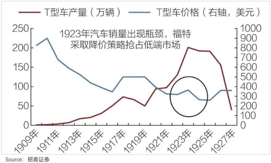 如此一来,单一的产品很难满足消费者多样的需求,我们在《新旧势力再洗牌,蔚小理被打回原形?》一文中论述过,汽车渗透率不断提高后,福特仍然延续低价策略,T型车几乎没有重大变化,而通用汽车通过研发创新以及不断地改款提升产品价值,实现了逆袭。