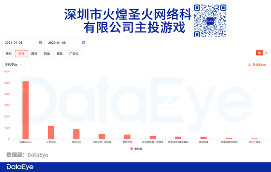 DataEye-ADX数据显示,涉嫌素材侵权的游戏,《九州明月刀》主投公司为深圳市火煌圣火网络科技有限公司。