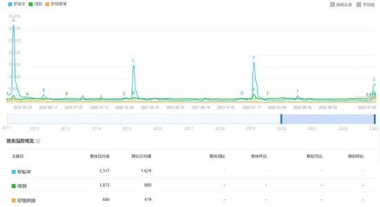 而为什么会选择通过跨年演讲来提升“得到”的流量?这或许就要提到罗振宇的个人IP影响力。截至2023年1月,百度指数显示,词条“罗振宇”近三年来的整体日均值为2127,相比之下,“得到”和“罗辑思维”的整体日均值分别为分别为1873和686。