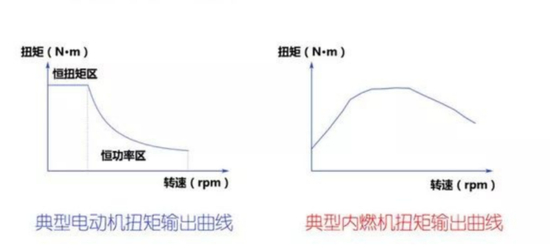 以发动机为例:动力上,电机的扭矩输出特性与内燃机不同。电机可以瞬间达到最大扭矩,很轻易就能实现燃油车跑车级别的加速度,极大地提升了驾驶感受。