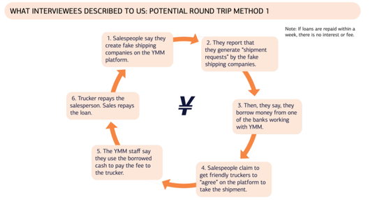 为了论证该观点,J Capital Research采访了36位前满帮员工和业内人士。前雇员详细地告诉机构他们如何建立空壳公司来创造“交易”,高管们描述的其他往返方式还包括利用大公司进行已经达成一致的交易。YMM的一位前销售主管证实了上述说法,他说:“你可以这么说,没有很多真正的订单。”