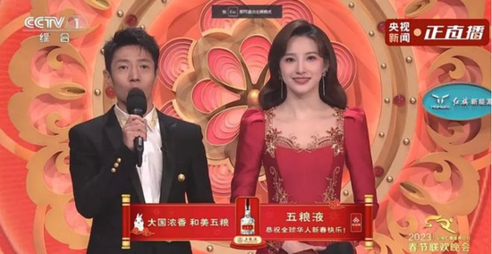 有意思的是,春晚直播期间,由于五粮液的品牌名称字幕恰好对应主持人画面,被网友调侃:“今年春晚怎么还有主持人叫五粮液的?”该话题也引发了社交平台上五粮液的二次传播。
