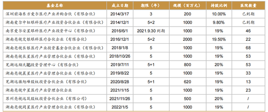 相关数据显示,设立产业基金之前,爱尔眼科平均每年医院的扩张速度仅为16%,但在2014年成立产业基金后,爱尔眼科每年新增医院数量年复合增长率提升至41.1%,扩张速度大幅提升。