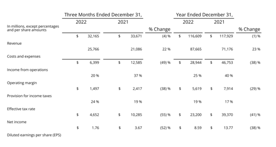 首先是各项关键指标几乎都仍在同比下降,特别是四季度净利润仅为 46.52 亿美元,较上年同期的 102.85 亿美元大降 55%。从2022年的全年表现来看,Meta的业绩可以说也是非常“惨淡”。