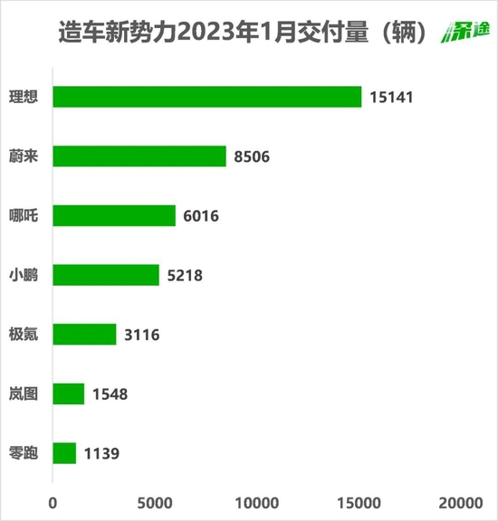 除了理想,其他新势力的1月交付量不论是绝对数,还是环比增幅,都相对不是很“理想”。