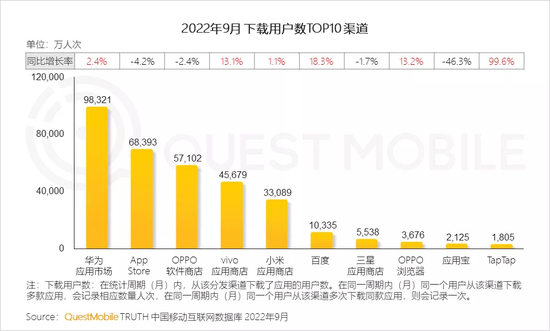 QuestMobile披露的数据显示,2022年9月,下载用户Top10的渠道中,并没有荣耀应用商店。这也从侧面揭示出,荣耀的系统用户基数以及用户粘性都不理想,很难不直接影响荣耀IoT生态的影响力。