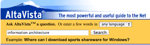 但以Alta Vista为首的搜索工具对搜索关键词与索引结果之间的关联分析仍然十分薄弱,这很大程度源于搜索工具最初的受用人群。在互联网普及之前,信息搜索只是服务于文献查找的工具,其框架长久建立在学术圈以关键词加权平均为信息搜索基础的逻辑上。
