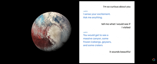去年开发者大会 I/O 上,谷歌展示了大语言模型LaMDA如何以冥王星作为对话主体来与人进行交流,这种回答是即时生成的,并不是学习了大量预定义的结果。大语言模型LaMDA和多模态多任务模型MUM所表现出来的素质,意味着谷歌已经具备与ChatGPT相近的AI能力。