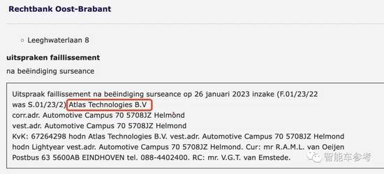 “停止支付”被认定通过后,法院正式宣判Atlas Technologies B.V.破产。