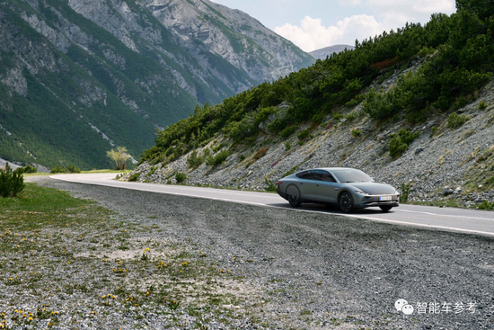 车身外部装有1000多块小型太阳能电池板,可以为汽车的60kWh电池供电,电池续航为625公里(WLTP工况),每天最多可以从太阳补能70公里的续航。