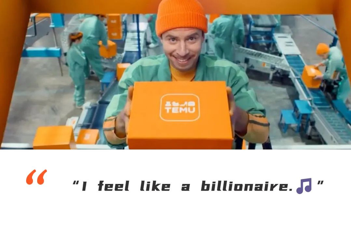 “With Temu’s shockingly low prices, you feel you can buy whatever you want. Download the app now and enjoy shopping like a billionaire.”(Temu的低价让您感觉到可以随意“买买买”,下载Temu应用,像亿万富翁一样购物)