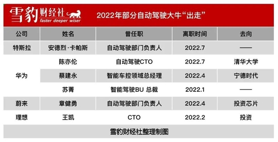 2022年,特斯拉自动驾驶的灵魂人物安德烈·卡帕斯(Andrej Karparthy)离职,华为、蔚来、理想等公司,至少7位自动驾驶主将出走。落地难,烧钱多,成为横亘在理想和现实之间的一道巨大鸿沟。(详见雪豹财经社《智能汽车最大的泡泡,被特斯拉们撞破了》)