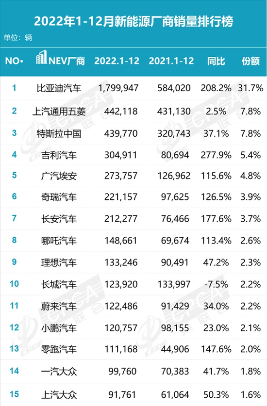 而在2022年,是国产新能源汽车持续扩张的一年,中国汽车工业协会最新统计显示,2022年我国新能源汽车持续爆发式增长,产销分别完成705.8万辆和688.7万辆,同比分别增长96.9%和93.4%,连续8年保持全球第一。