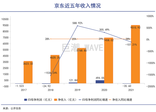 2021年,京东营收达到9515.92亿元,员工数超过42万人,收入体量和员工人数均位居中国民营企业第一名。