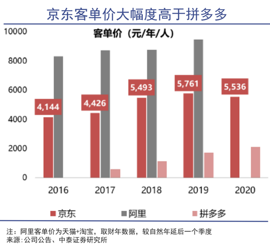 由于主要依托电子、家电类产品,京东单笔客单价要远高于其他平台,而近些年来京东ARPU(用户平均贡献收入)也在不断提升。国海证券预计到2022年底,京东ARPU将达到1746元,创历史新高。